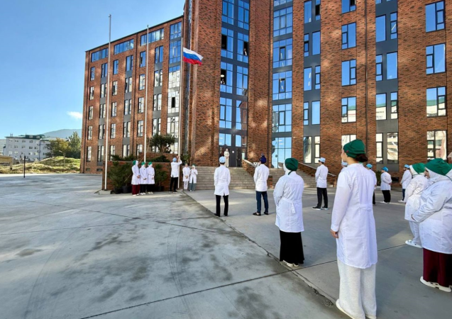 Поднятие флага и занятие «Разговоры о важном» в Медицинском колледже им. Башларова