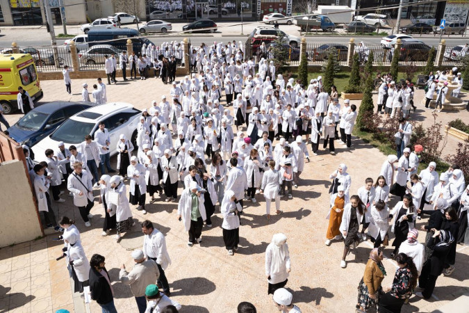 Студенты первых курсов МК им. Башларова отделений «Лечебное дело» и «Стоматология ортопедическая», с...